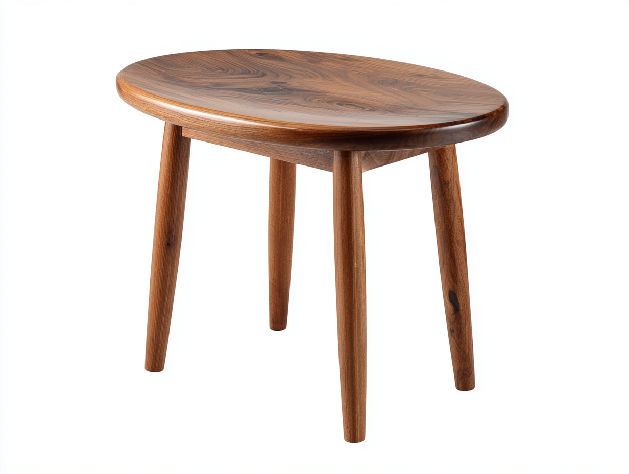 Realizzato in legno massello con finitura color noce, lo sgabello basso valorizza le venature naturali del materiale. Le superfici sono accuratamente levigate per garantire solidità strutturale e un aspetto curato.